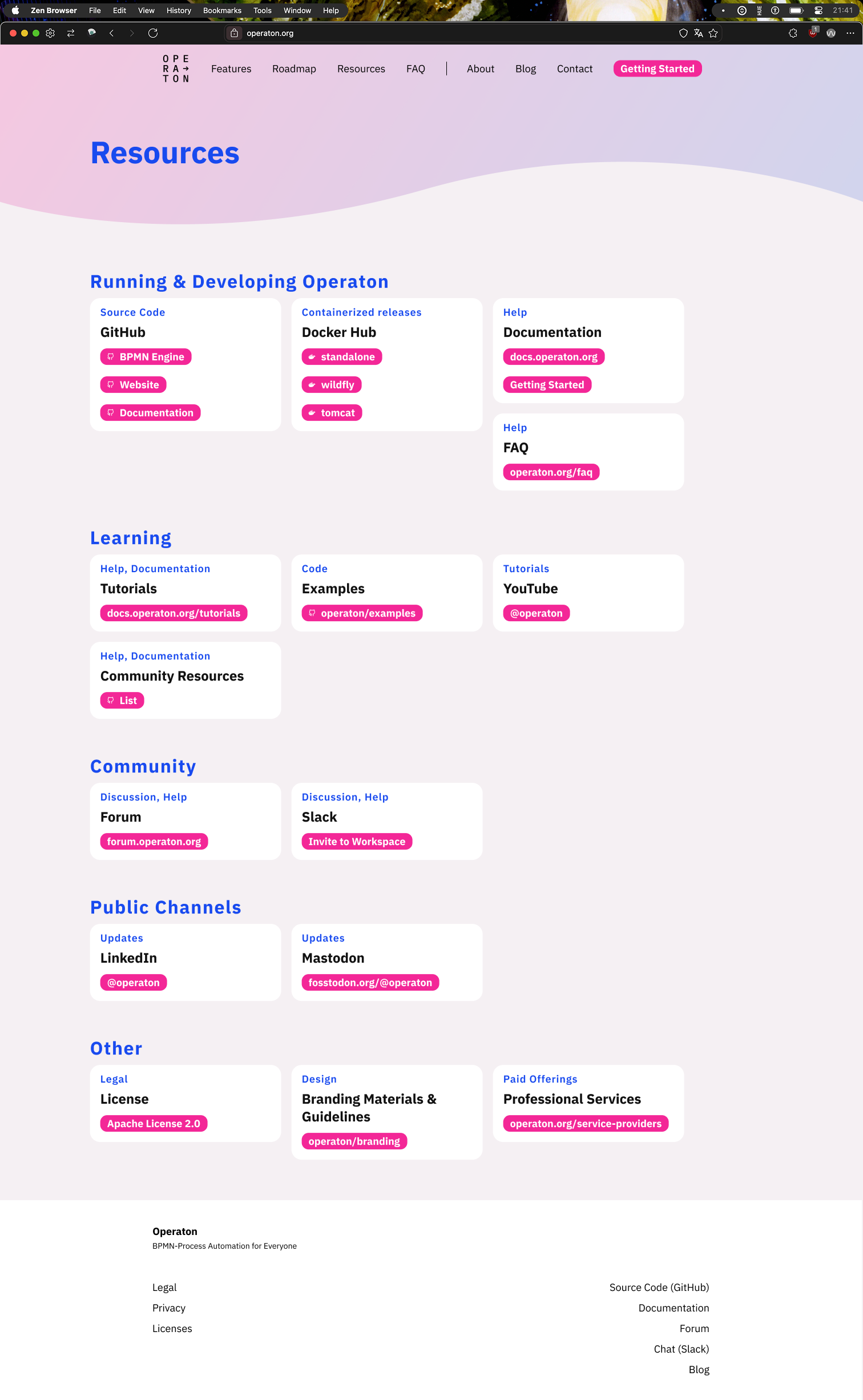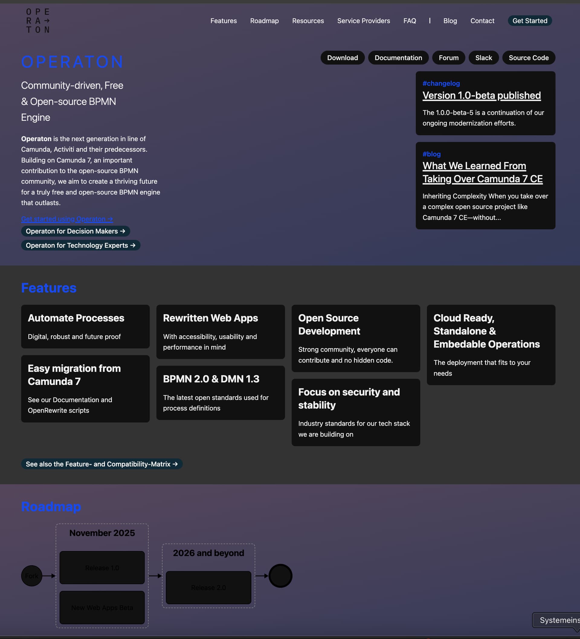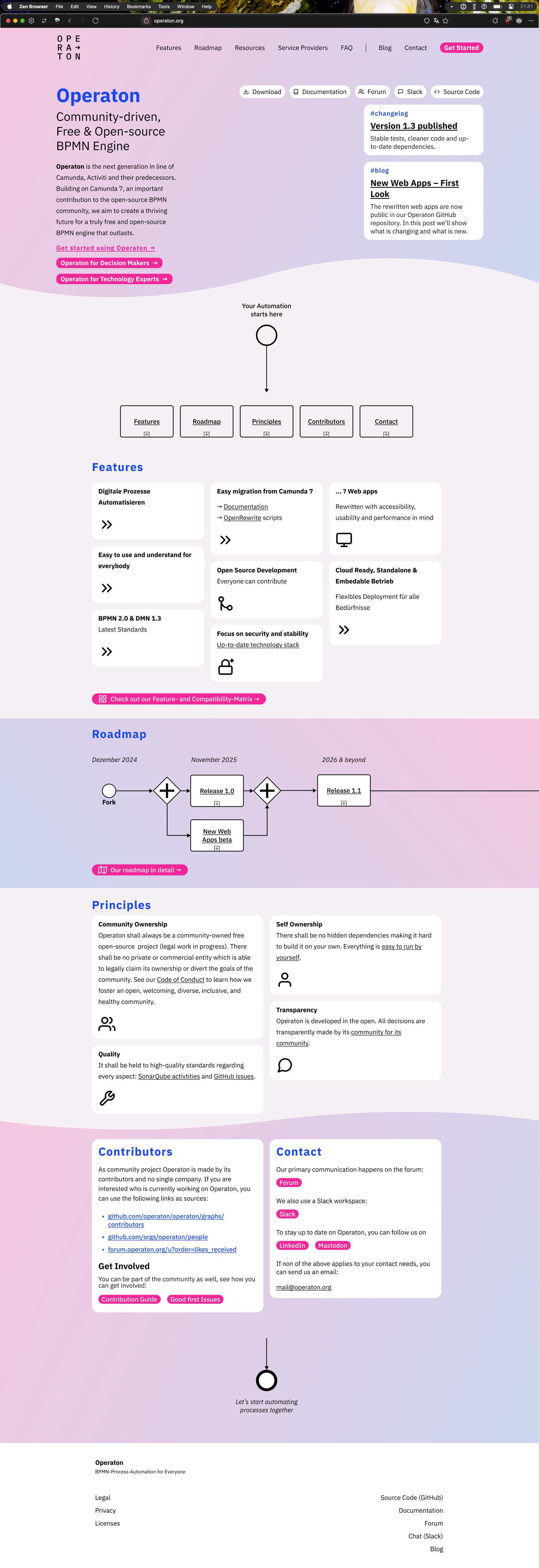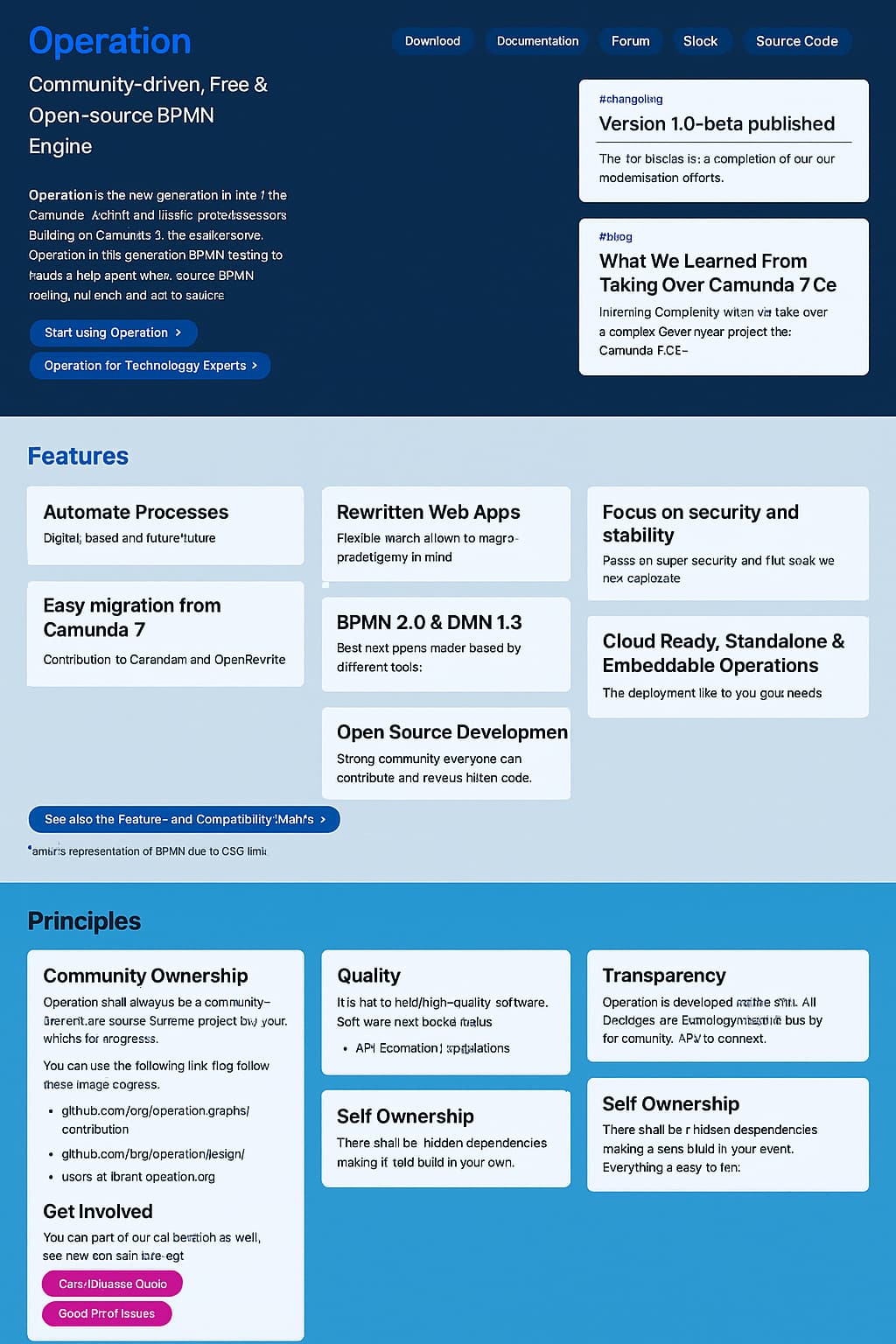 The first website iteration was about telling everyone, that we forked Camunda 7 as a community project, the second iteration about getting the content and the message right. The now proposed third iteration is about creating a design that is more appealing to interested technical and non-technical Operaton users, as well as revisiting the content and improving on it.